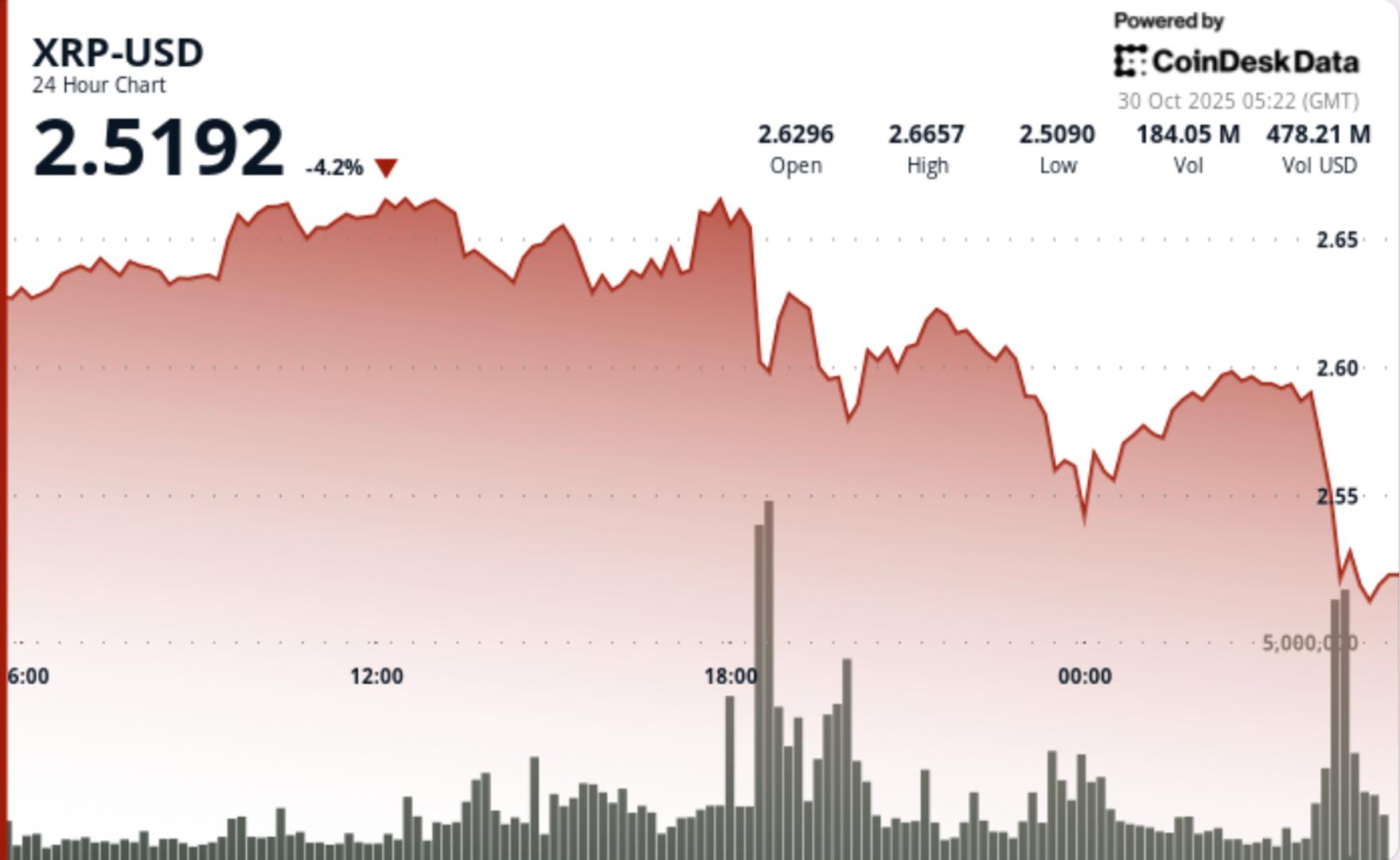 XRP Rejects $2.67 Breakout in Risk of Deeper Pullback as Fed Cuts Cause Bitcoin Slide