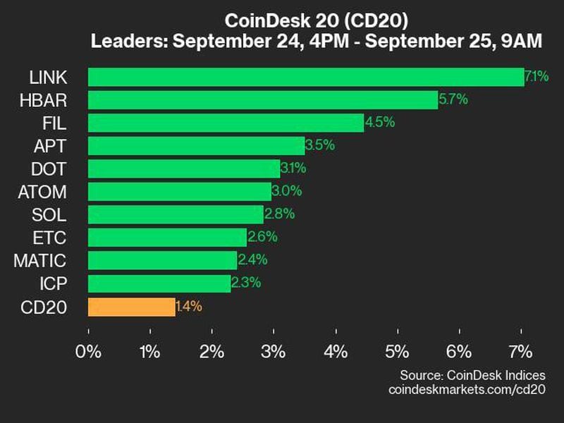 CoinDesk 20 Performance Update: LINK Surges by 7.1% as Index Rises