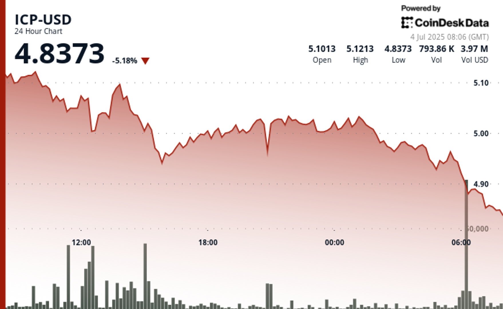 Internet Computer Protocol (ICP) is trading at $4.8373, down 5.18% in the past 24 hours, while the broader crypto market as gauged by the CoinDesk 20 Index dropped only half as much. ICP faced renewed selling pressure as geopolitical risks and cybersecurity threats rattled digital asset markets. The decline comes amid troubling findings from cybersecurity … Read more