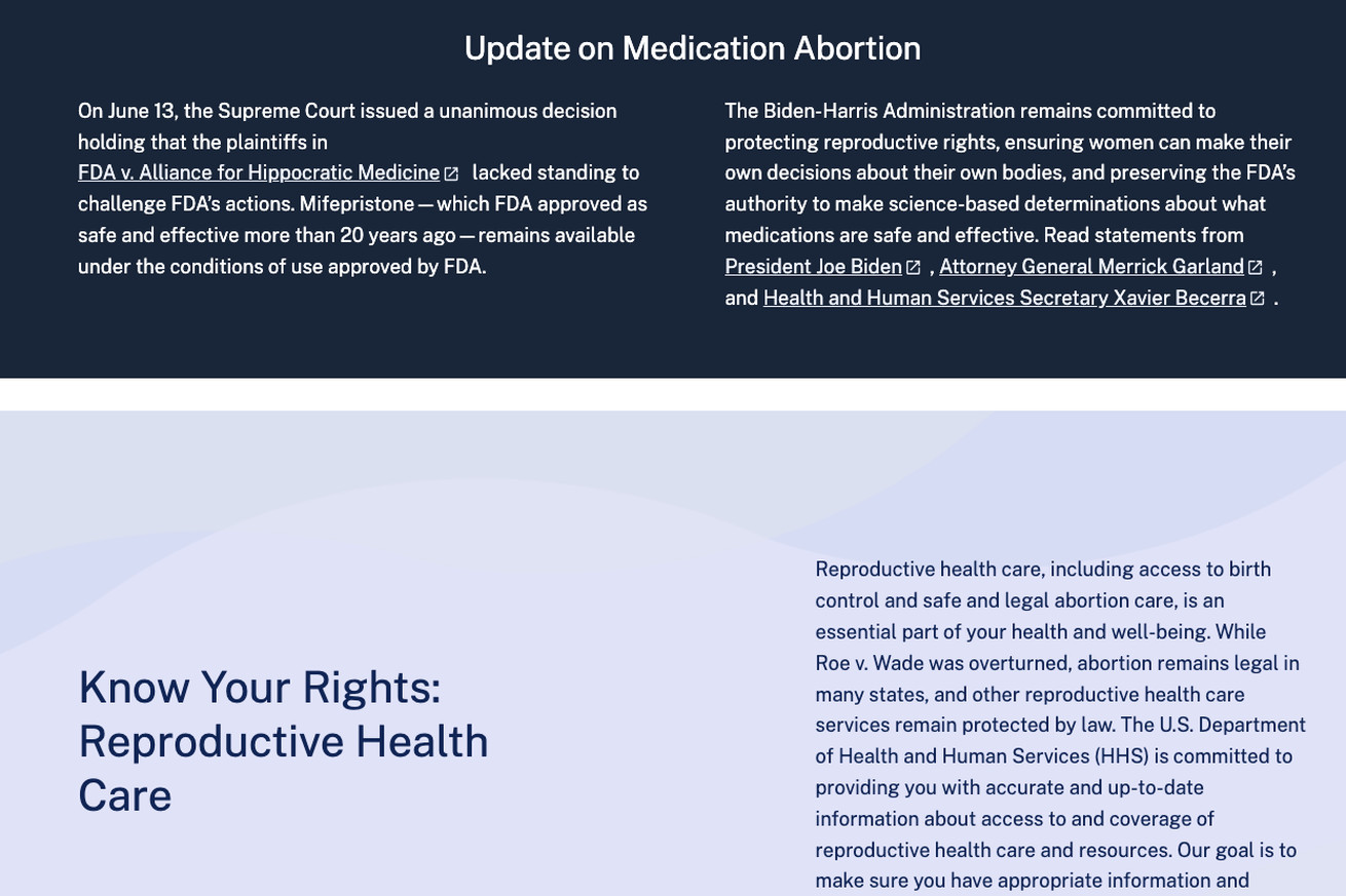 The Biden administration launched the website in 2022 in the wake of the the Supreme Court’s Decision to overturn Roe v. Wade. On top of information about abortion rights, the website also included resources on accessing preventative care including breast and cervical cancer screenings, prenatal care, and HIV screening. (The Internet Archive has a snapshot of what the website looked like as recently as January 15th.)