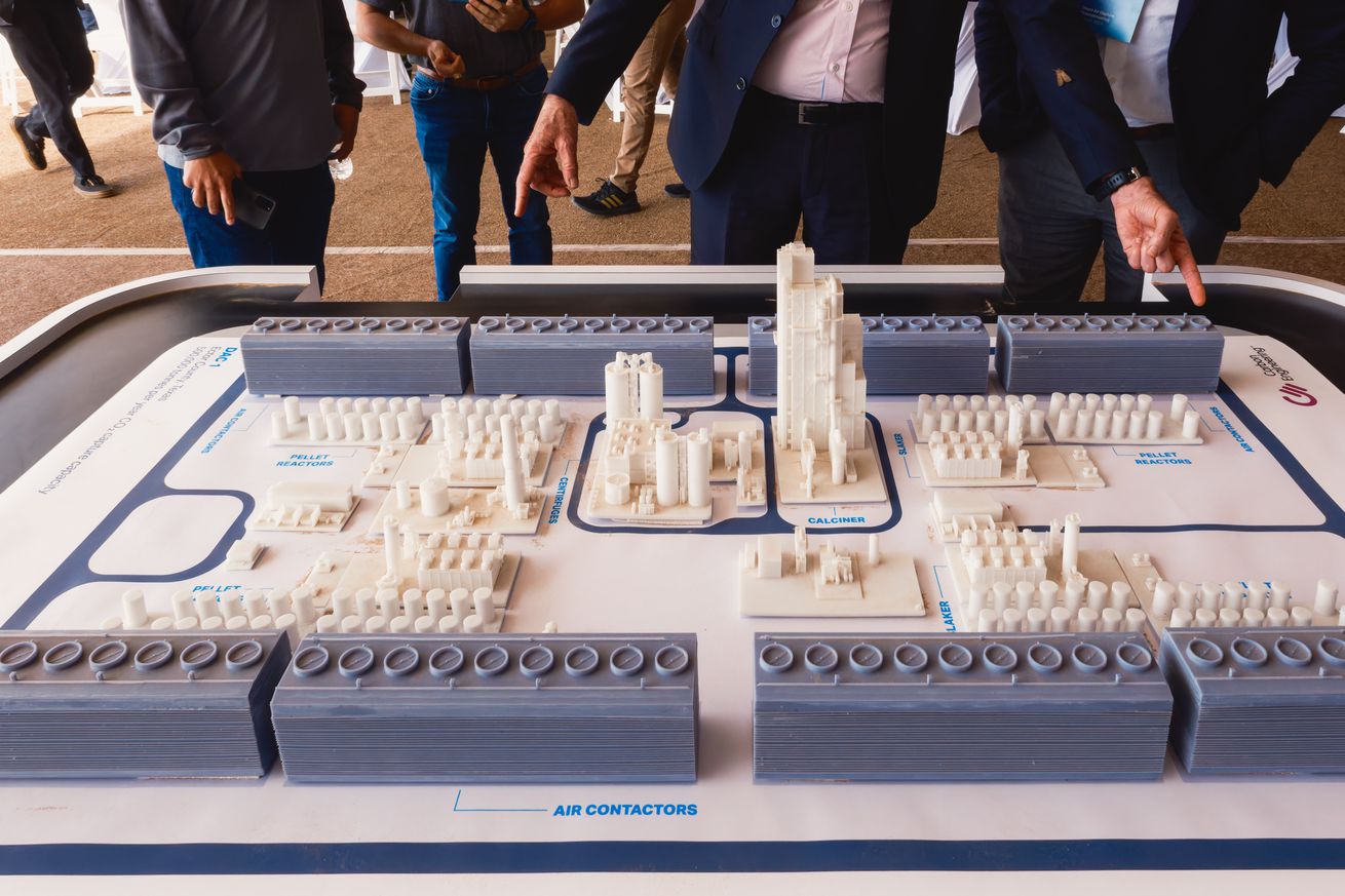 A small-scale model of a carbon removal facility during a groundbreaking ceremony at the Occidental Petroleum and 1PointFive Direct Air Capture (DAC) plant in Ector County, Texas, on April 28th, 2023. | Photo: Getty Images