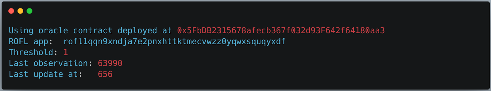 In this section, we’ll walk you through the steps required to set up an oracle using Oasis ROFL. By the end of this guide, you should be able to create an oracle that fetches data from Binance and posts it on-chain. The process involves setting up your development environment, writing both on-chain and off-chain code, and testing everything on a local Sapphire instance.