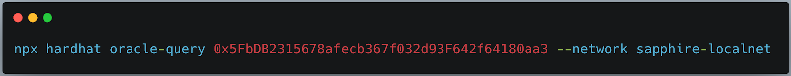 - Checking the Oracle’s working: To make sure the oracle is working correctly, you can use the oracle-query command in the Hardhat project. Simply run: n