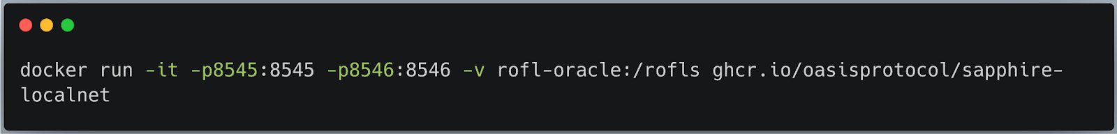 This command runs the Sapphire localnet and automatically launches your ROFL application. Running a local instance helps you simulate real-world scenarios without spending gas fees on a public Testnet or Mainnet.