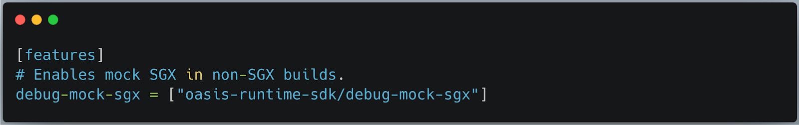 You can use the debug-mock-sgx feature to enable the use of a mock SGX environment during non-SGX builds for testing and debugging purposes by adding the following in Cargo.toml file