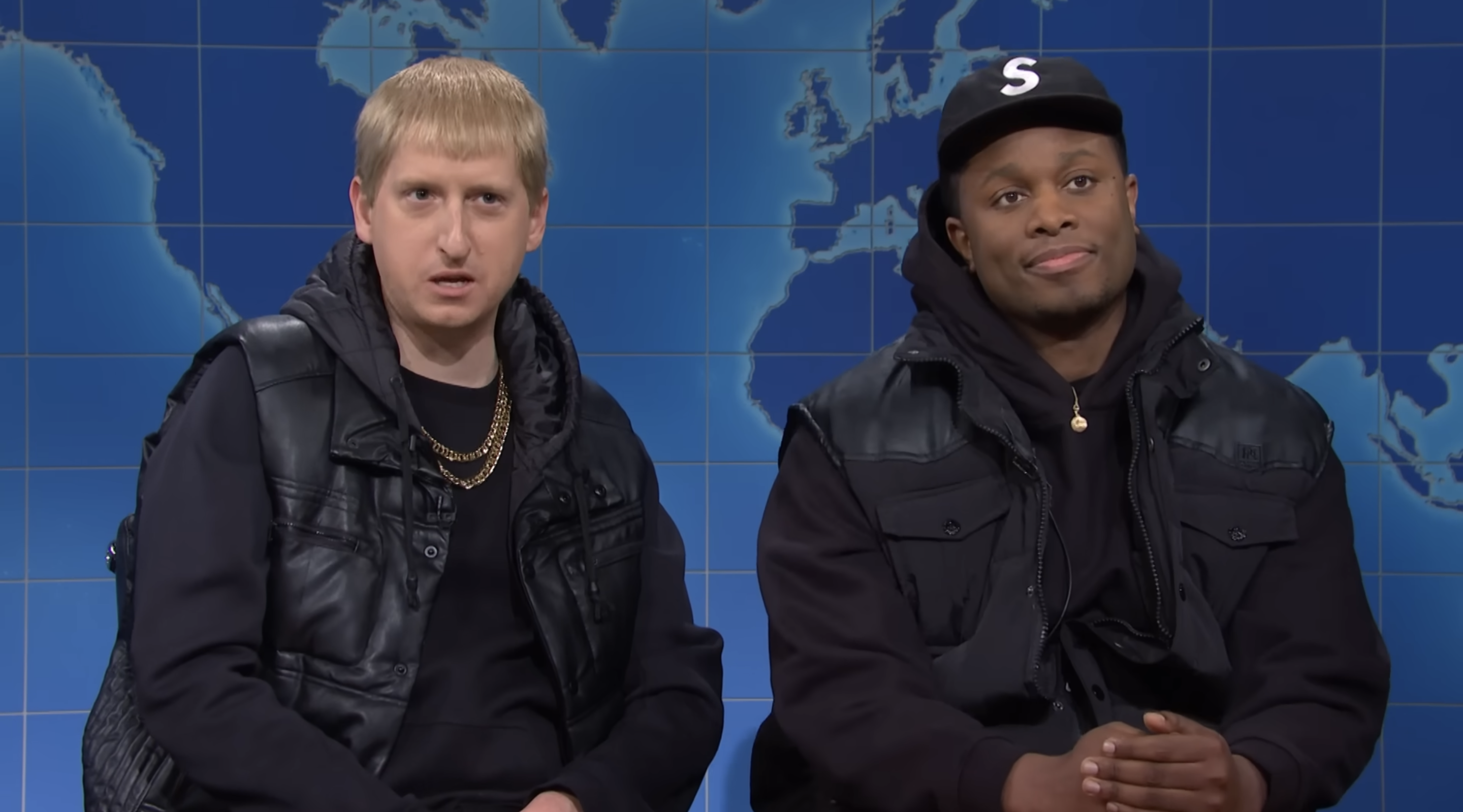 James Austin Johnson and Devon Walker as British rappers Milly Pounds and Shirty. | Image: NBC