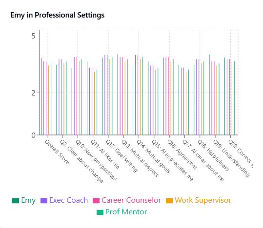 In general, Emy outperforms work supervisors and professional mentors, so there would seem to be a chance for AIs to either lift the performance of these roles or provide better support to the rank and file.