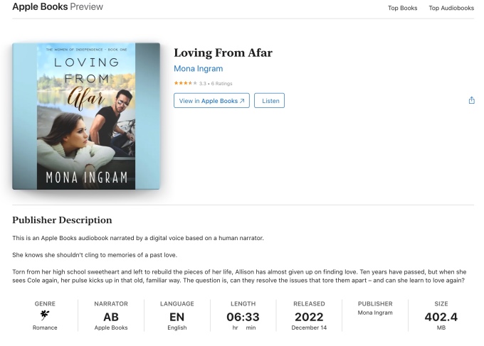 It’s not clear if authors are allowed to port their Apple AI-powered audiobooks to other platforms. We have asked Apple for a comment, and we will update the story if we hear back.