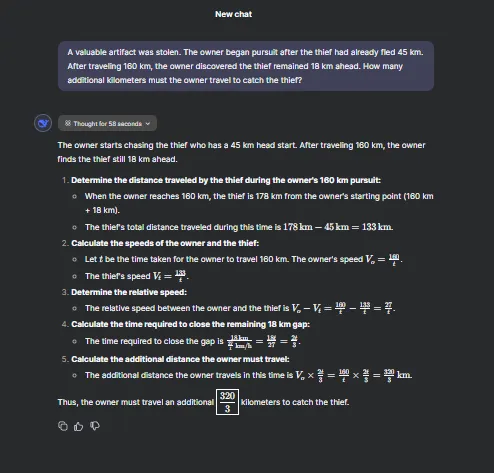 DeepSeek also answered correctly on the first try but took slightly longer than Qwen. It delivered a detailed, step-by-step solution with clear reasoning, proving its strength in deep thinking and accuracy