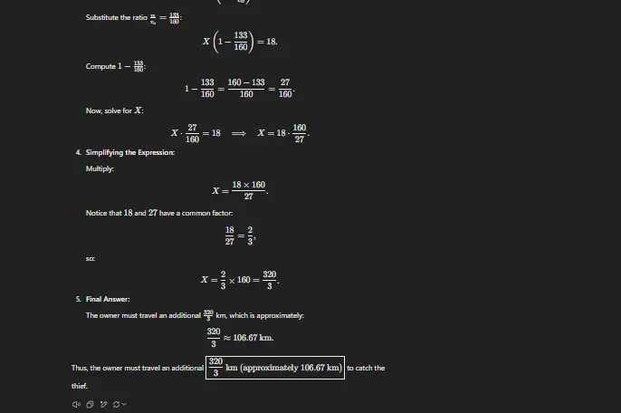 ==“A valuable artifact was stolen. The owner began pursuit after the thief had already fled 45 km. After traveling 160 km, the owner discovered the thief remained 18 km ahead. How many additional kilometers must the owner travel to catch the thief?”==