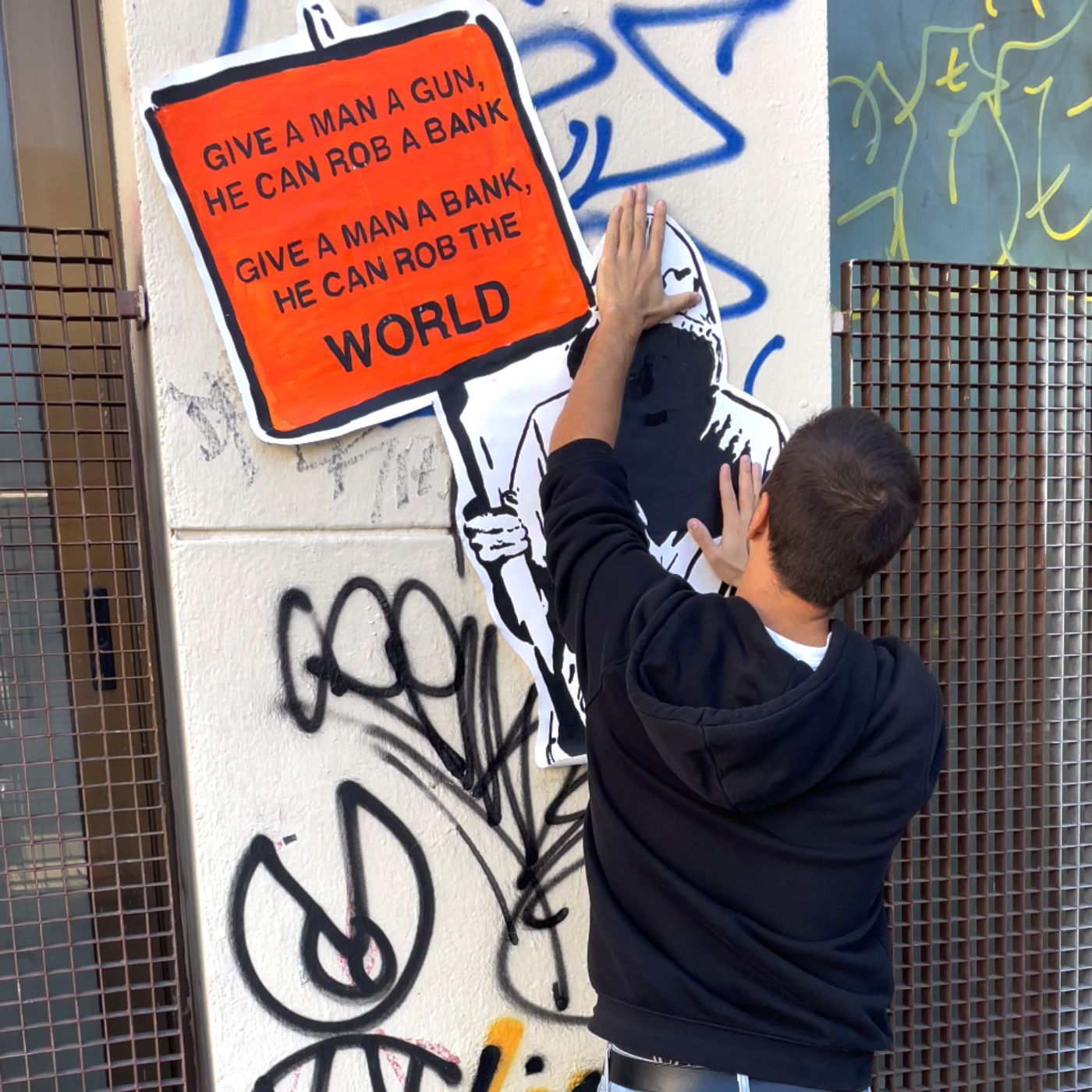 QUESTION: One of the most fascinating things about your art is its non-profit character. At least, not in a “traditional” sense. People can visit your online store and order art they like, but you’re more interested in encouraging and empowering every individual to become a street artist themselves. Can you please explain your motivation for such an approach and give more details on how it’s supposed to work in real life?