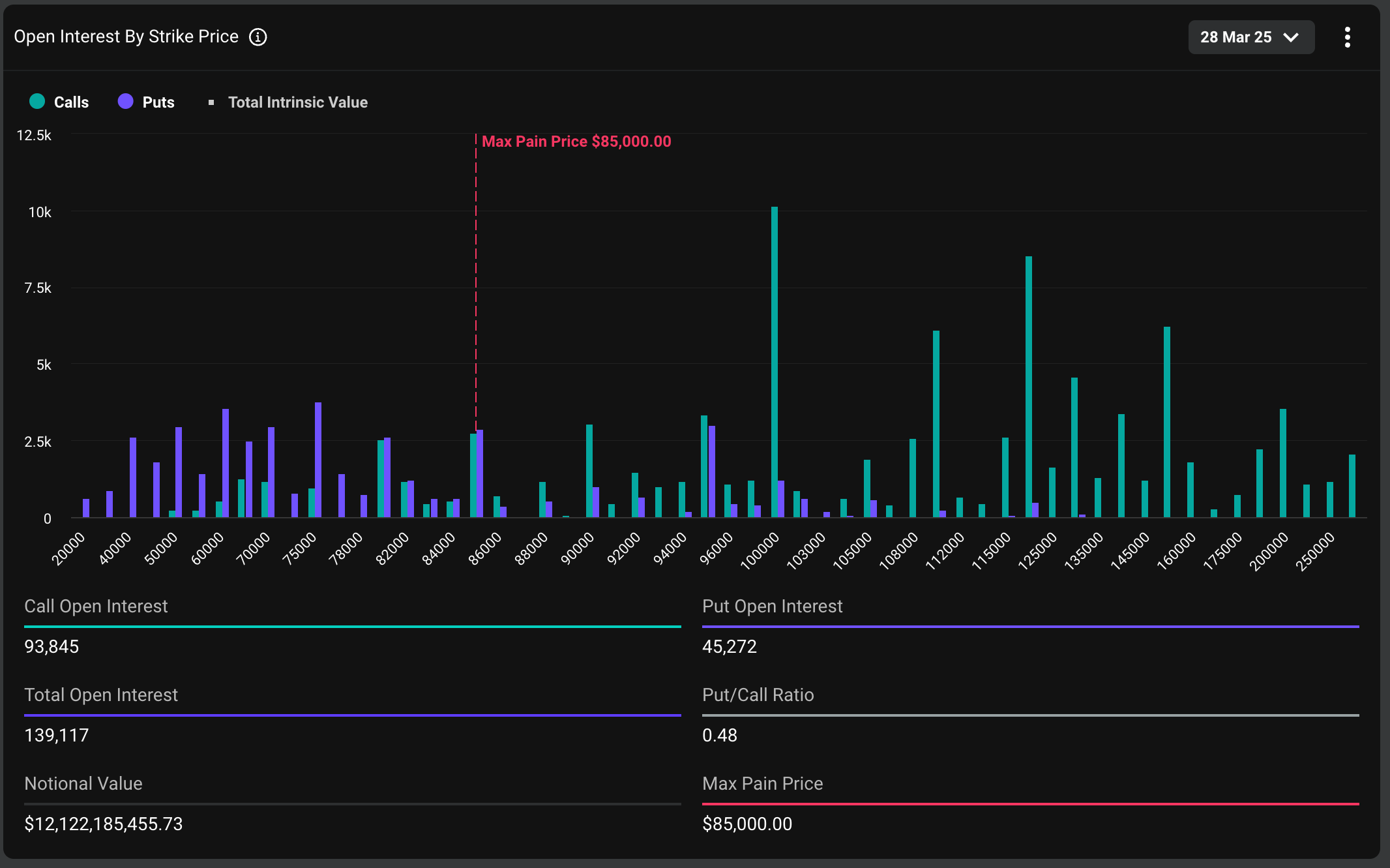 More than 139,000 BTC option contracts, worth $12.13 billion, representing nearly 45% of the total active BTC contracts across all expiries, are due for settlement this Friday, according to data source Deribit metrics.