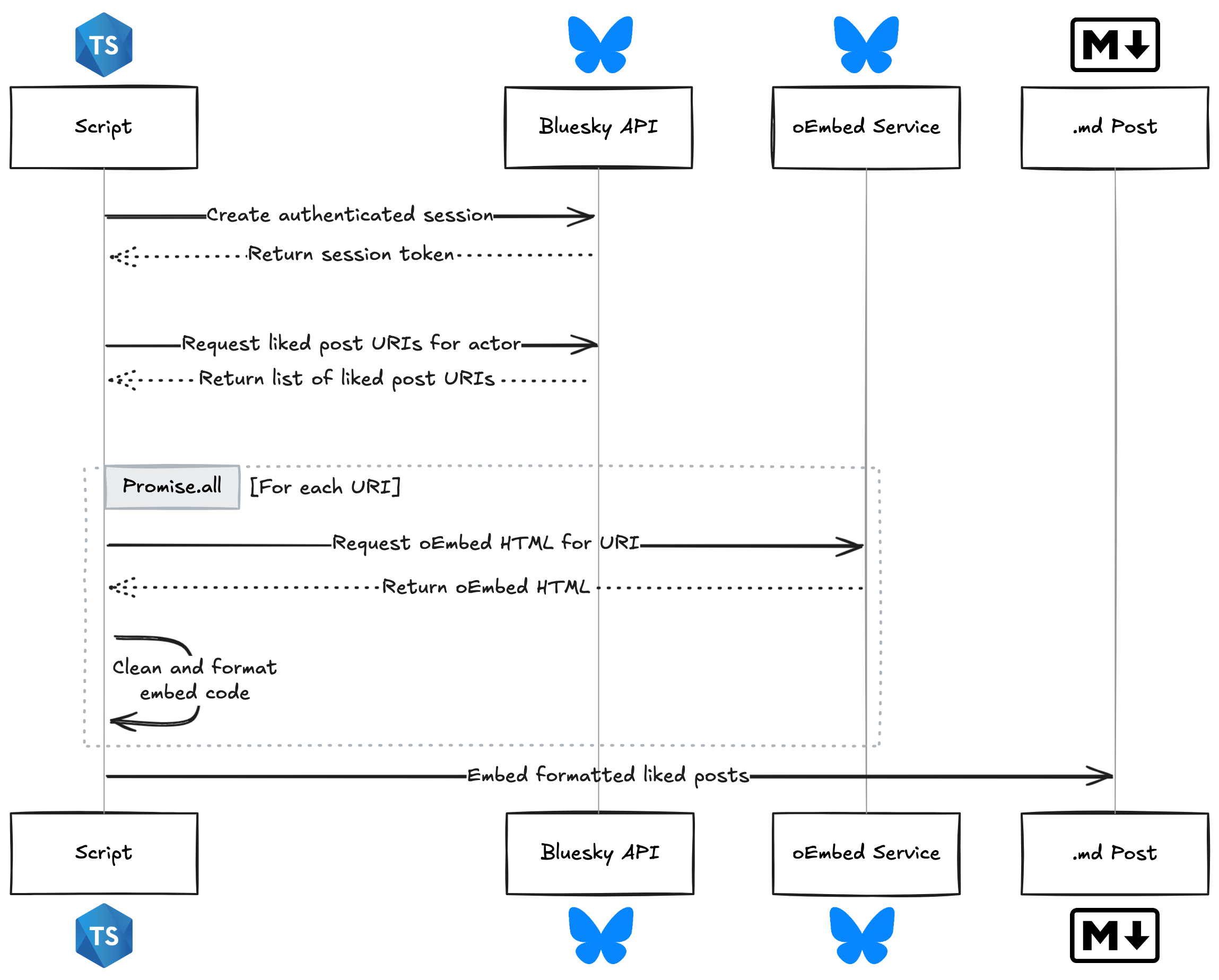 I have built a script that allows me to automatically embed my Bluesky posts in a markdown blog post. I think that any or all of the steps used in this script are valuable for many use-cases.