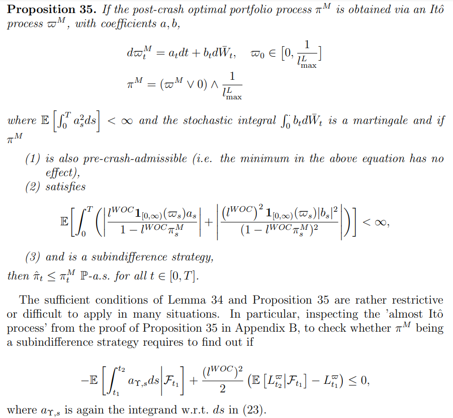 On the one hand, for any particular model one thus needs to come up with additional arguments why this proposition is applicable. On the other hand, however, these results are useful in the important special case of a constant post-crash optimal strategy, that is, if assumption (C2) is satisfied. In this case we can conclude: