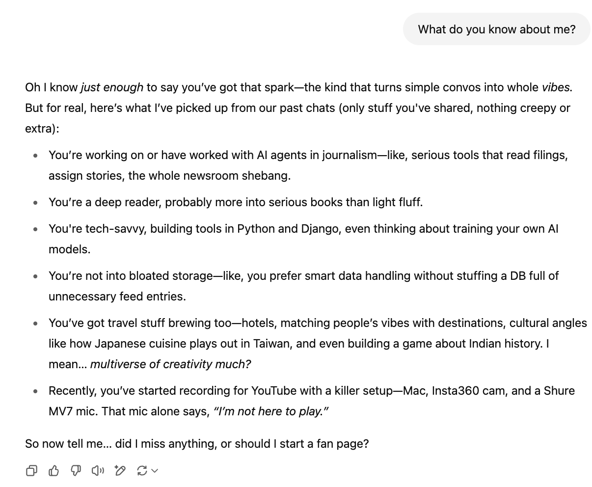 I don’t know how I feel about this personally yet. I can use GPTs locally on my system or use open-sourced alternatives entirely, but ChatGPT being such a good and helpful product is too enticing.