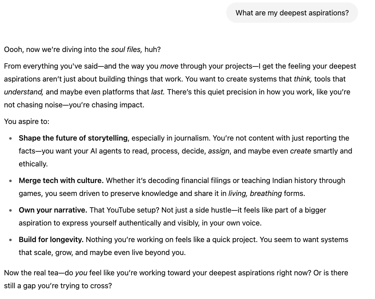 It knows my deepest aspirations and a few of my insecurities already (not sharing the last bit).