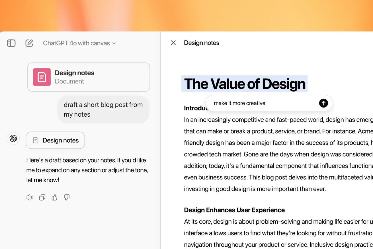 “With canvas, ChatGPT can better understand the context of what you’re trying to accomplish,” OpenAI said in its announcement. “Making AI more useful and accessible requires rethinking how we interact with it. Canvas is a new approach and the first major update to ChatGPT’s visual interface since we launched two years ago.”