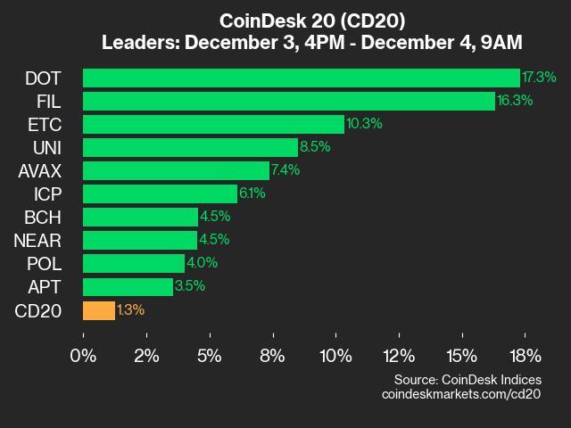 Leaders: DOT (+17.3%) and FIL (+16.3%).