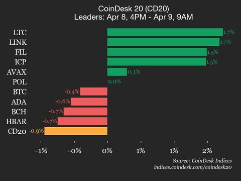 CoinDesk Indices presents its daily market update, highlighting the performance of leaders and laggards in the CoinDesk 20 Index.