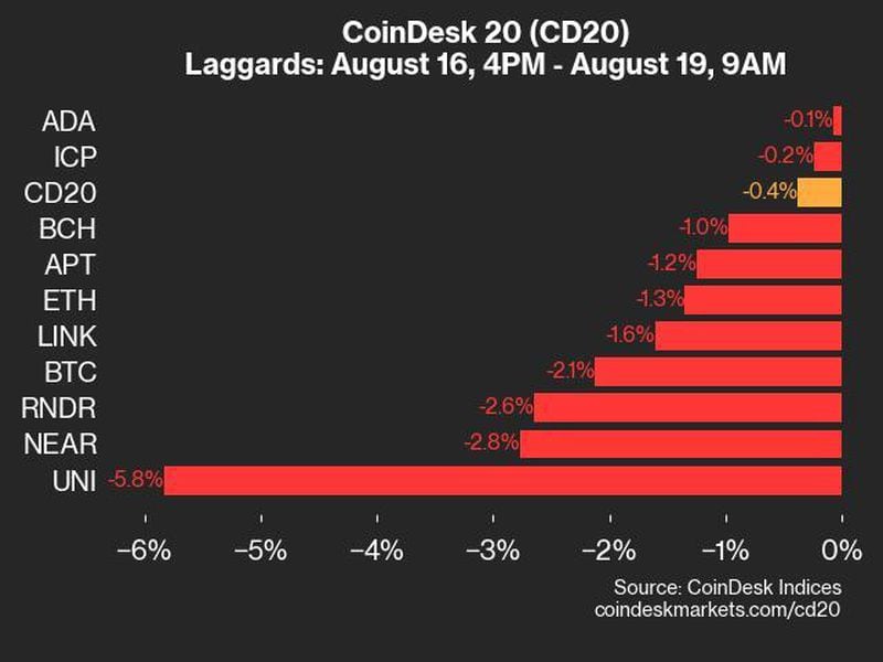CoinDesk 20 Performance Update: UNI Drops 5.8% as Index Trades Lower August 19, 2024 by UNI falls 5.8% while NEAR loses 2’8% in mixed performance for CoinDesk 20’s top assets.