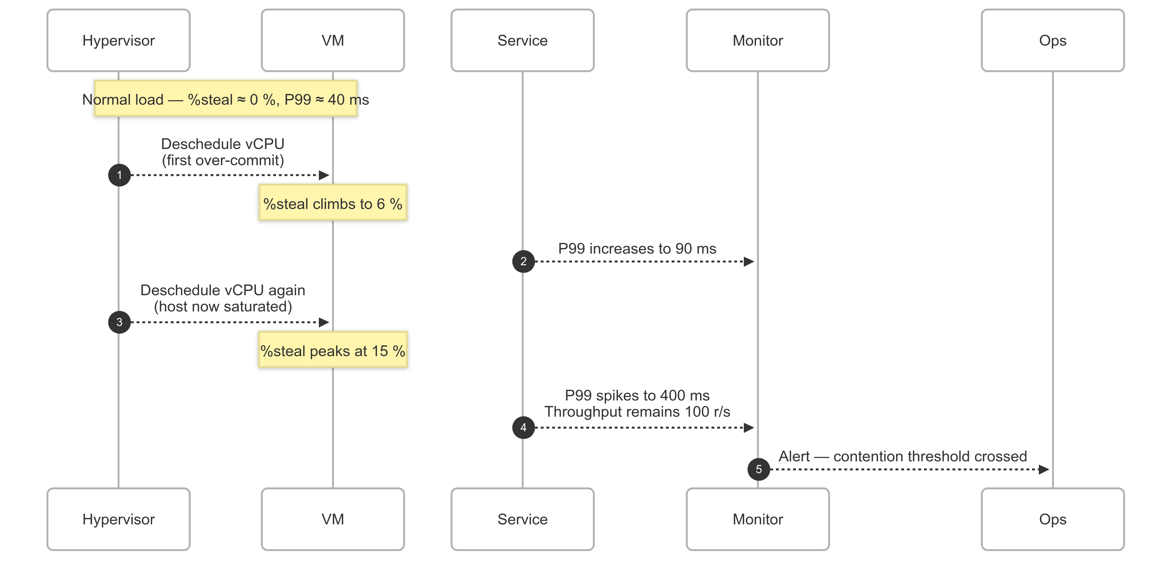 - Instrument first-class contention metrics: steal time and scheduler wait alongside service-level indicators.
