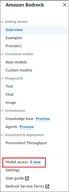 On the Amazon Bedrock console, choose Model access in the navigation pane.