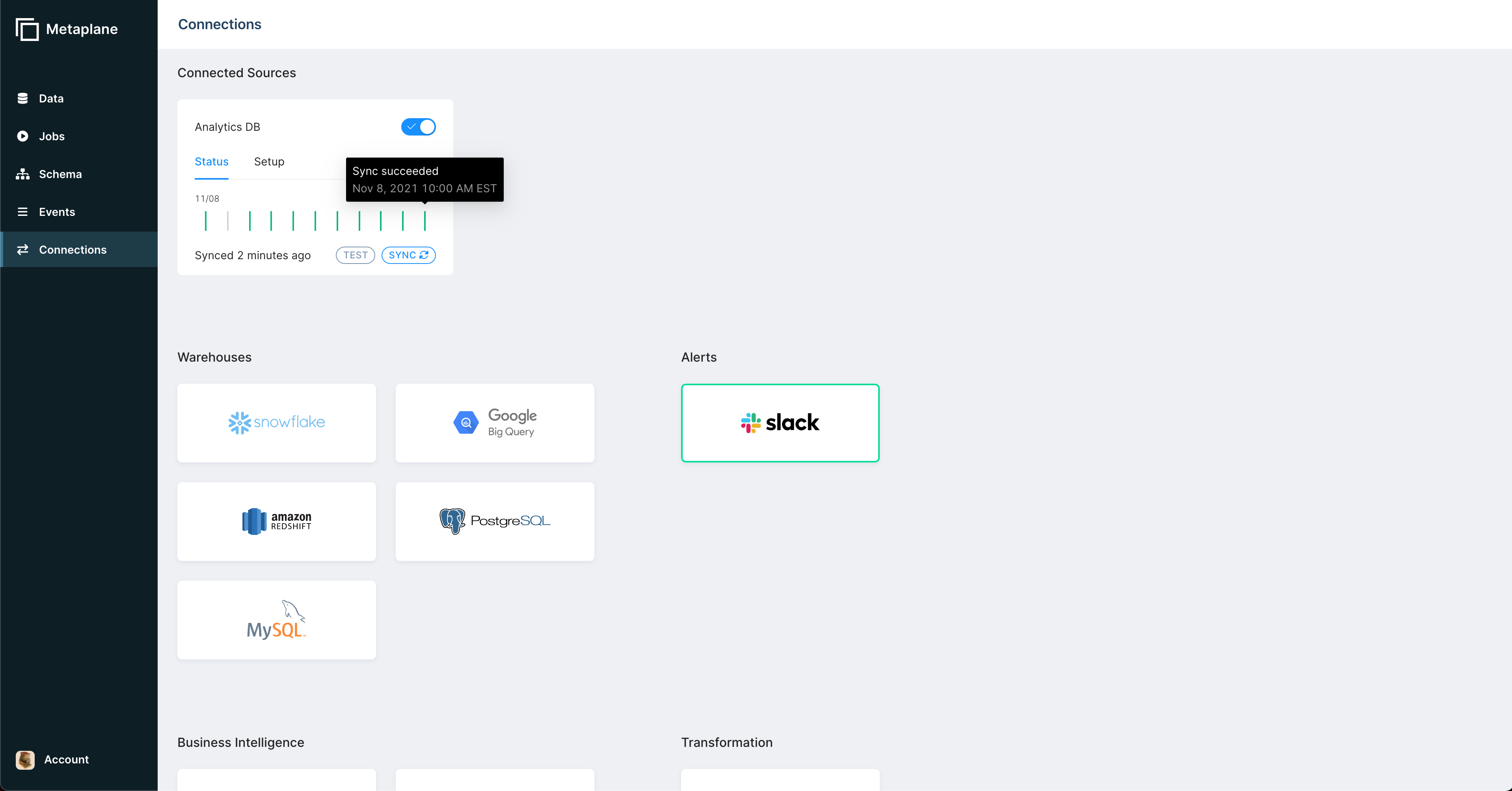 App integrations in the Metaplane interface. Image Credits: Metaplane