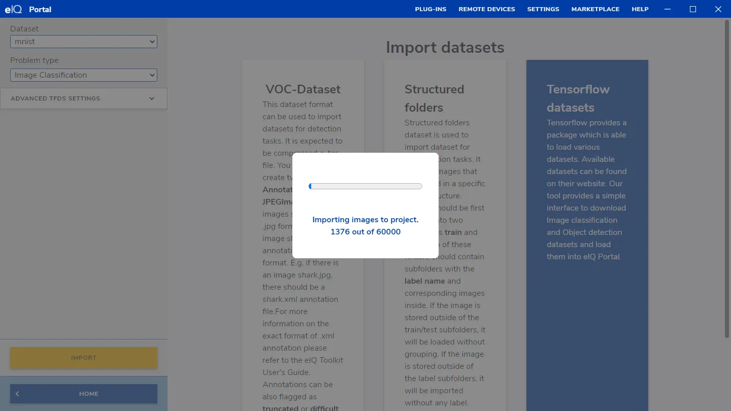 After selecting the dataset, click the ”IMPORT” button, select the save directory, and wait for the import. As shown in the figure below: