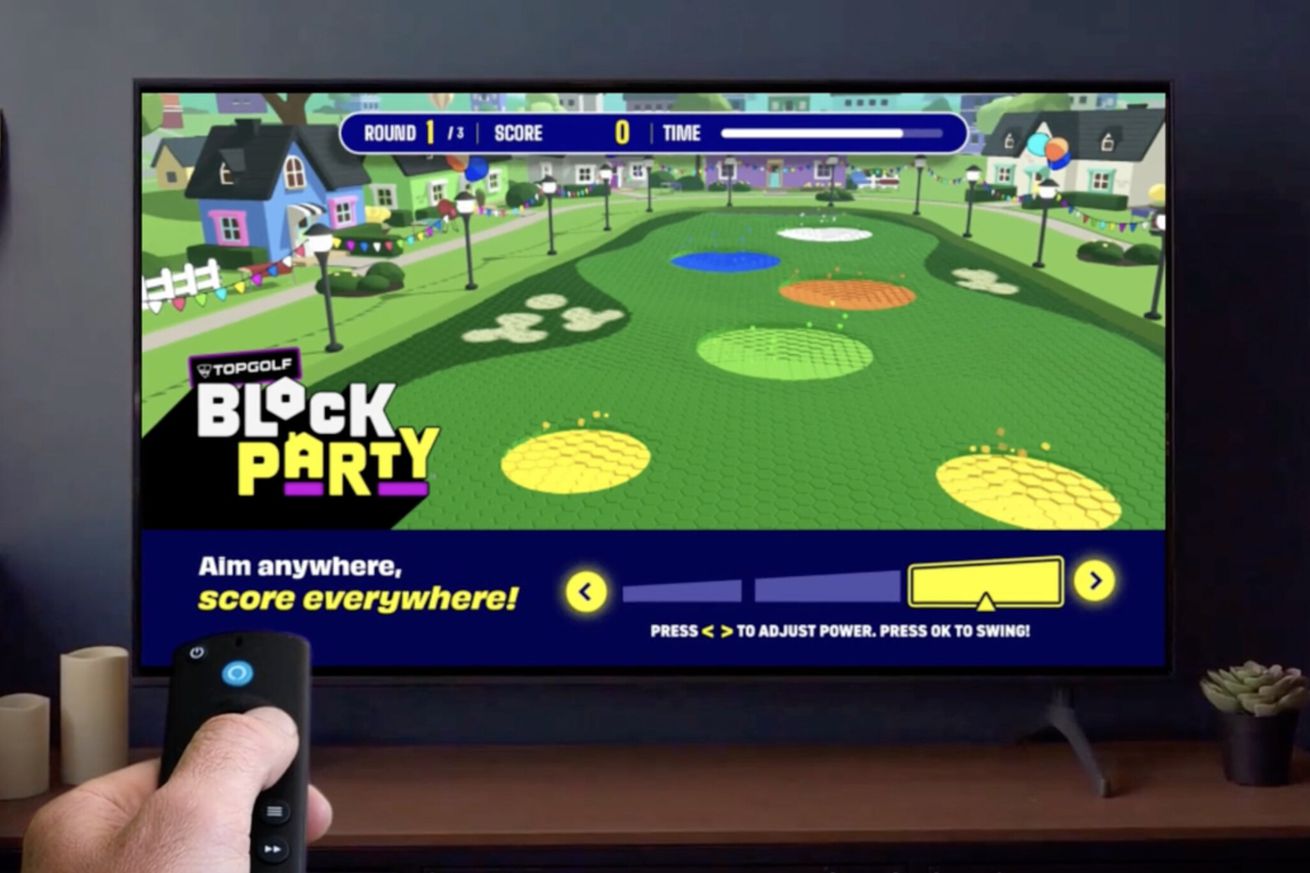 You might see two different advergames to start: Quiz Show and Beat the Clock. While Quiz Show presents a series of trivia questions, Beat the Clock challenges viewers to land golf balls into specific targets using their remote. Of course, they’re branded experiences, as the Beat the Clock ad features branding for Topgolf, and the Quiz Show game will prominently display an ad for a company while you play.