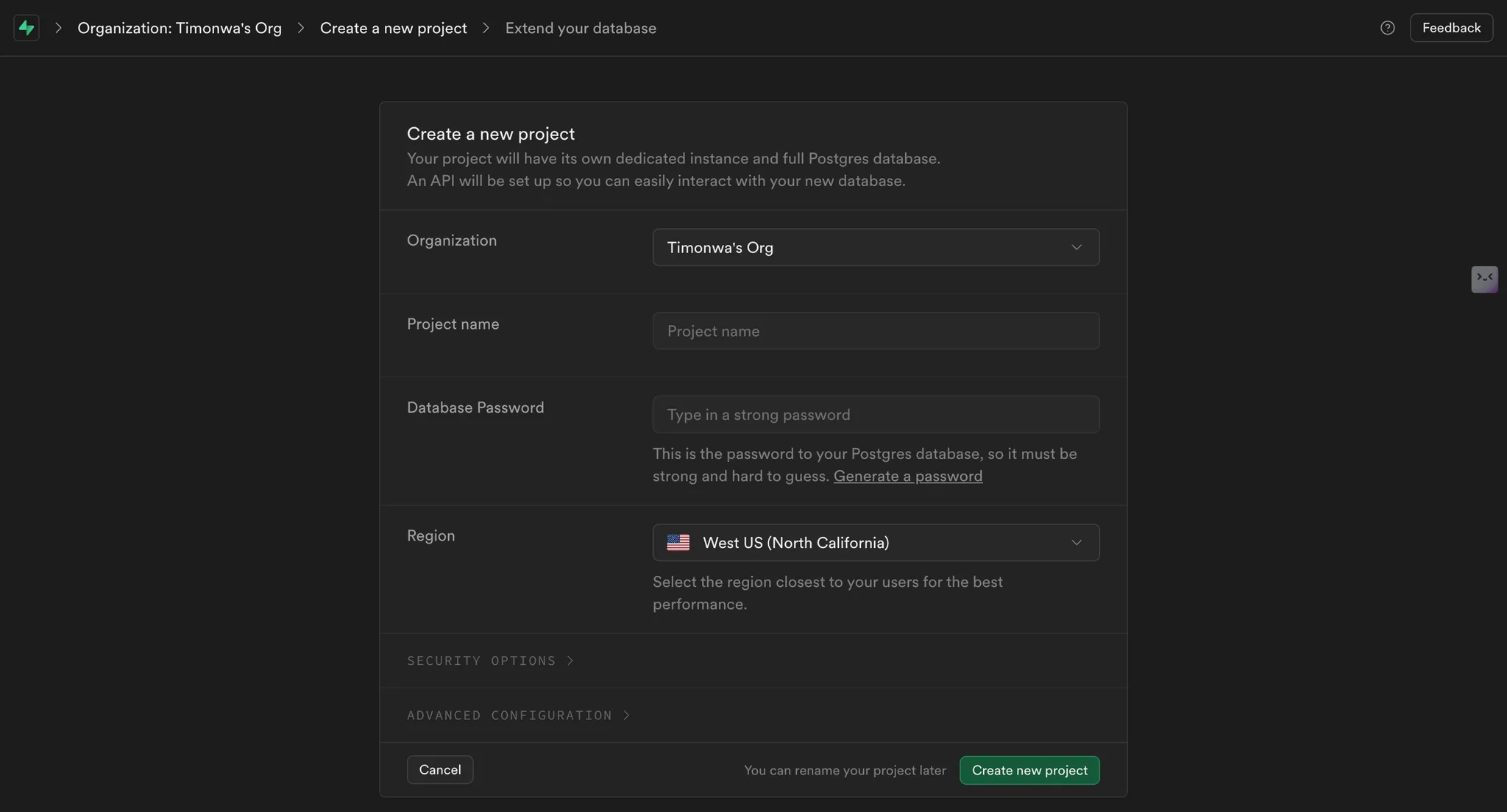 Once created, go to Project Settings → API and note your Project URL and Anon Key — you’ll need them later.
