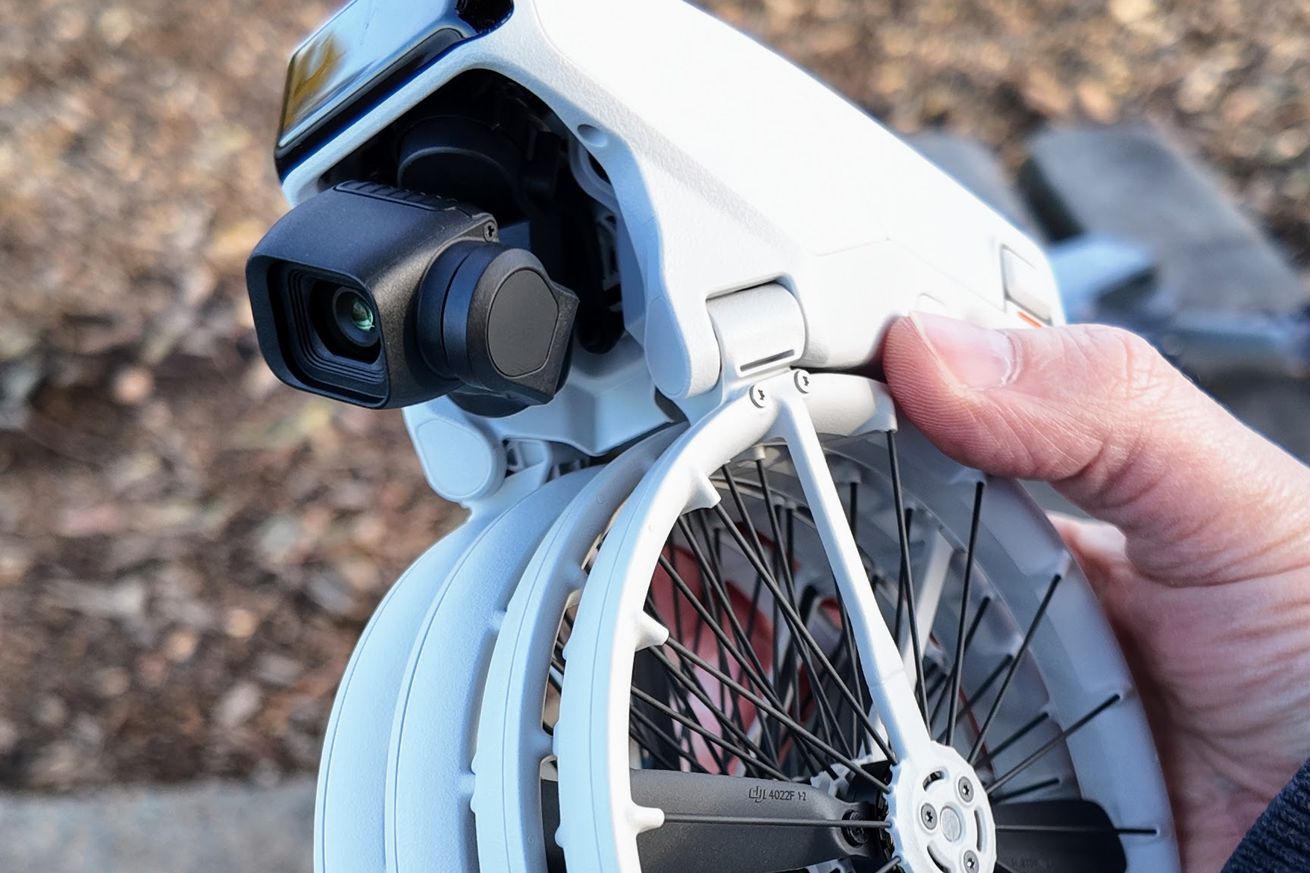 Not only is the Flip the first DJI drone to look like a Star Wars AT-AT walker or a penny-farthing bicycle when folded, it’s also the first to automatically power on when you unfold it, saving two button presses. And when you flip out each of its four spoke-filled full-coverage propeller guards — which DJI says are a first for its folding drones — they join an auto-braking, forward-facing 3D infrared sensor to protect the camera from any front impacts as well.