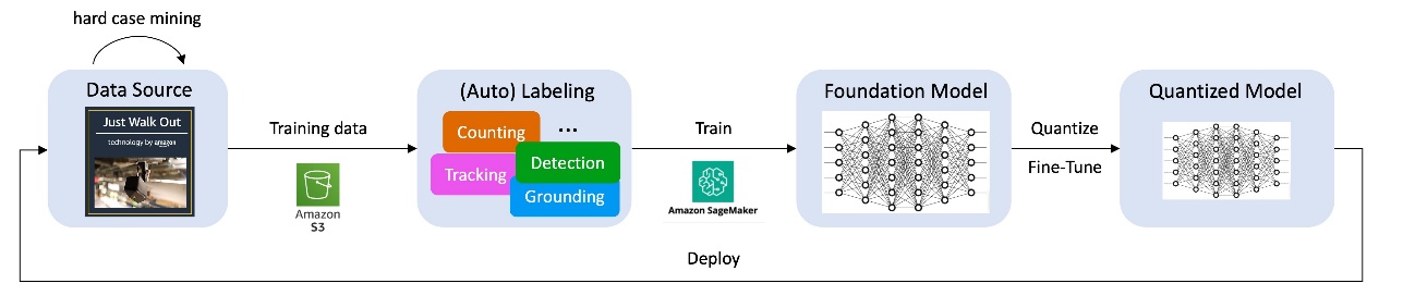 As the data flywheel continues to operate, it will progressively identify and incorporate more high-quality, challenging cases to test the robustness of the model. These additional difficult samples are then fed into the training set, further enhancing the model’s accuracy and applicability across new physical store environments.