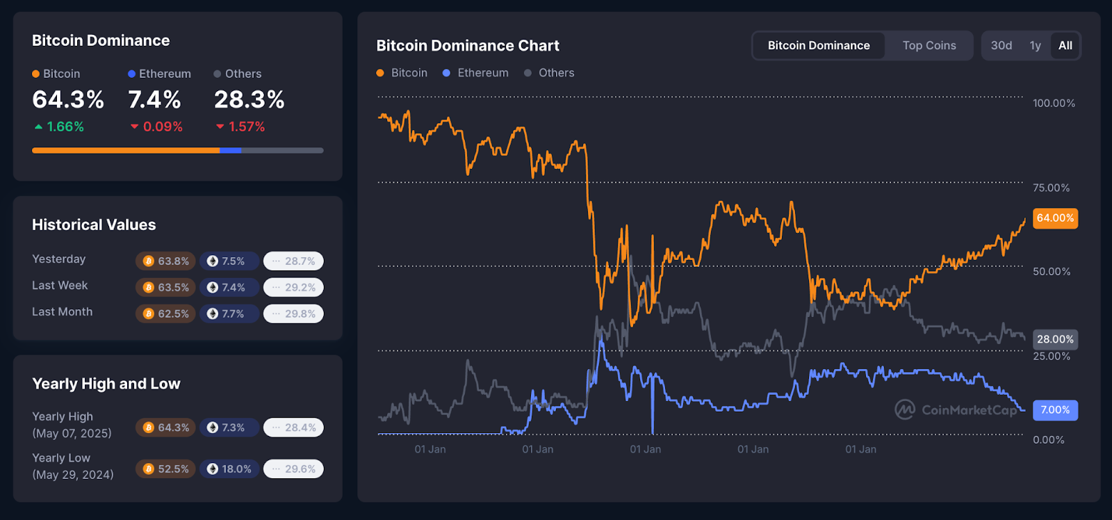 Ethereum’s “Pectra” network upgrade has successfully completed its mainnet launch. The update merges the Prague execution layer and the Electra consensus layer, delivering a suite of network protocol improvements, including enhancing layer 2 scaling, smart wallet functionality, improving UX, and overall efficiency of the Ethereum network.  Bitcoin’s dominance has risen to a 4-year-high, commanding over 64% of the total crypto market capitalization, whilst altcoins continue their struggle for any meaningful and sustained market momentum. The “Pectra” Upgrade arrives at a make-or-break moment for Ethereum as fast-rising networks like Solana continue to close ground on the world’s second-largest cryptocurrency.
