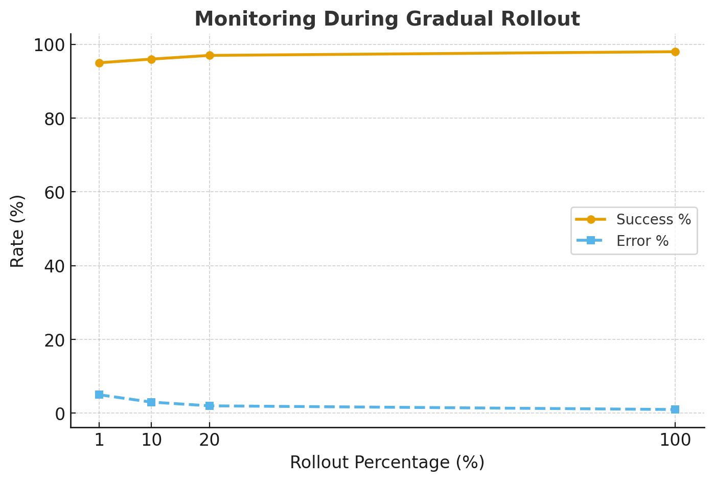 - Do rollout step by step. 1%, 5%, 10%… not 0 to 100.