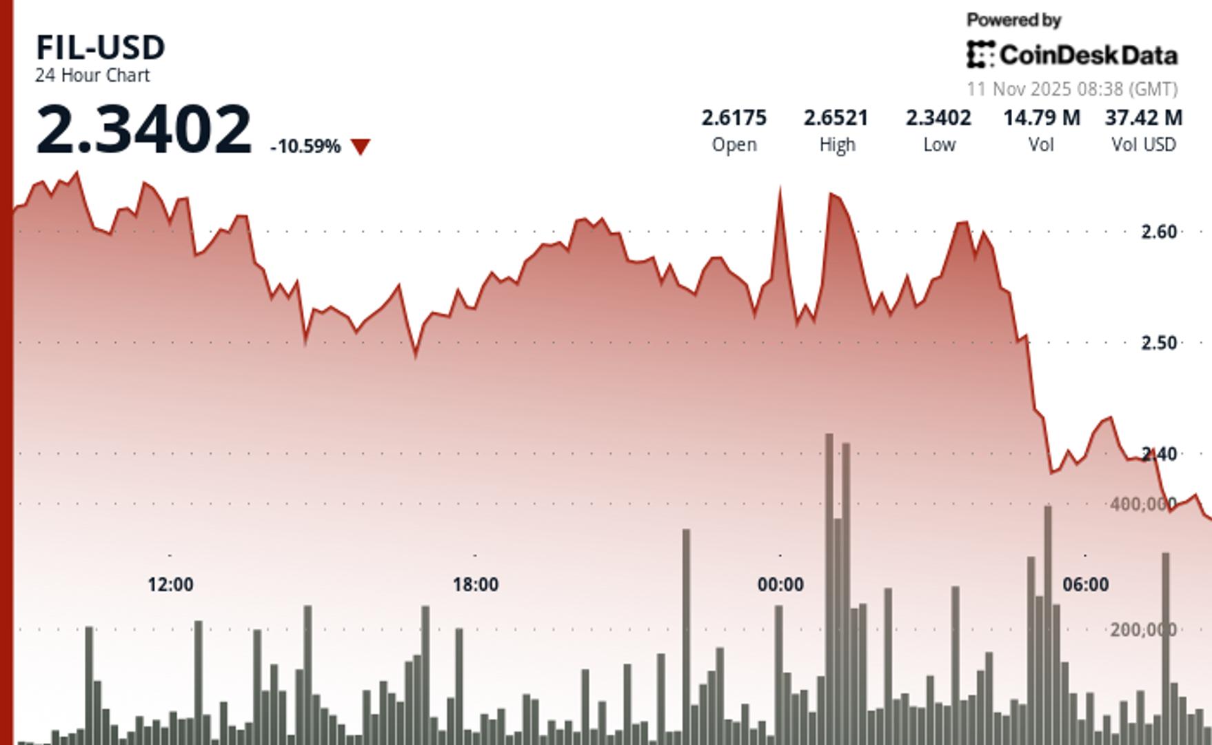 Filecoin Slides After Breaking Key Support Levels November 11, 2025 by kamal FIL faced heavy selling pressure as volume surged 137% above average during the technical breakdown.