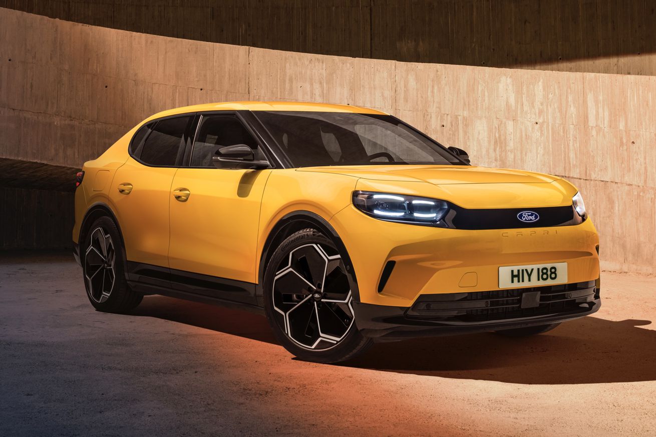 Ford’s classic Capri coupe is returning as a four-door electric vehicle with a profile resembling other chunky-looking electric crossovers like the Polestar 2.