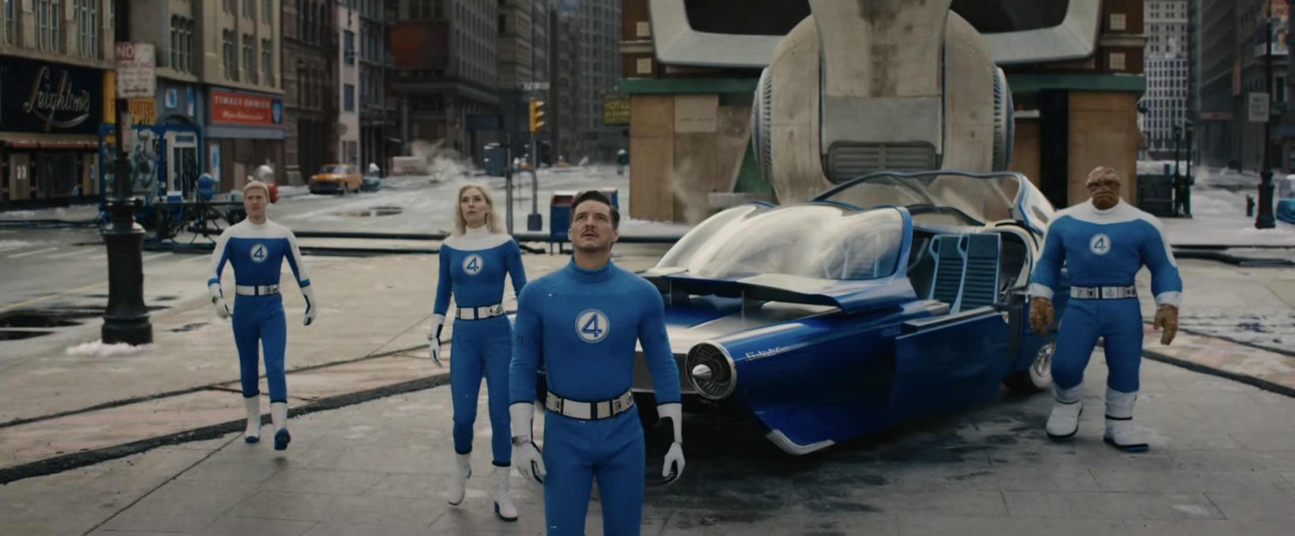 In the new trailer, which highlights the FF’s status as global celebrities, hope and excitement for the future feels like the general vibe. But the mood comes crashing down as the sky is filled with storm clouds, and a metallic women on a surfboard (Julia Garner) announces that Earth has been chosen to be destroyed by an even more terrifying presence from beyond the stars.
