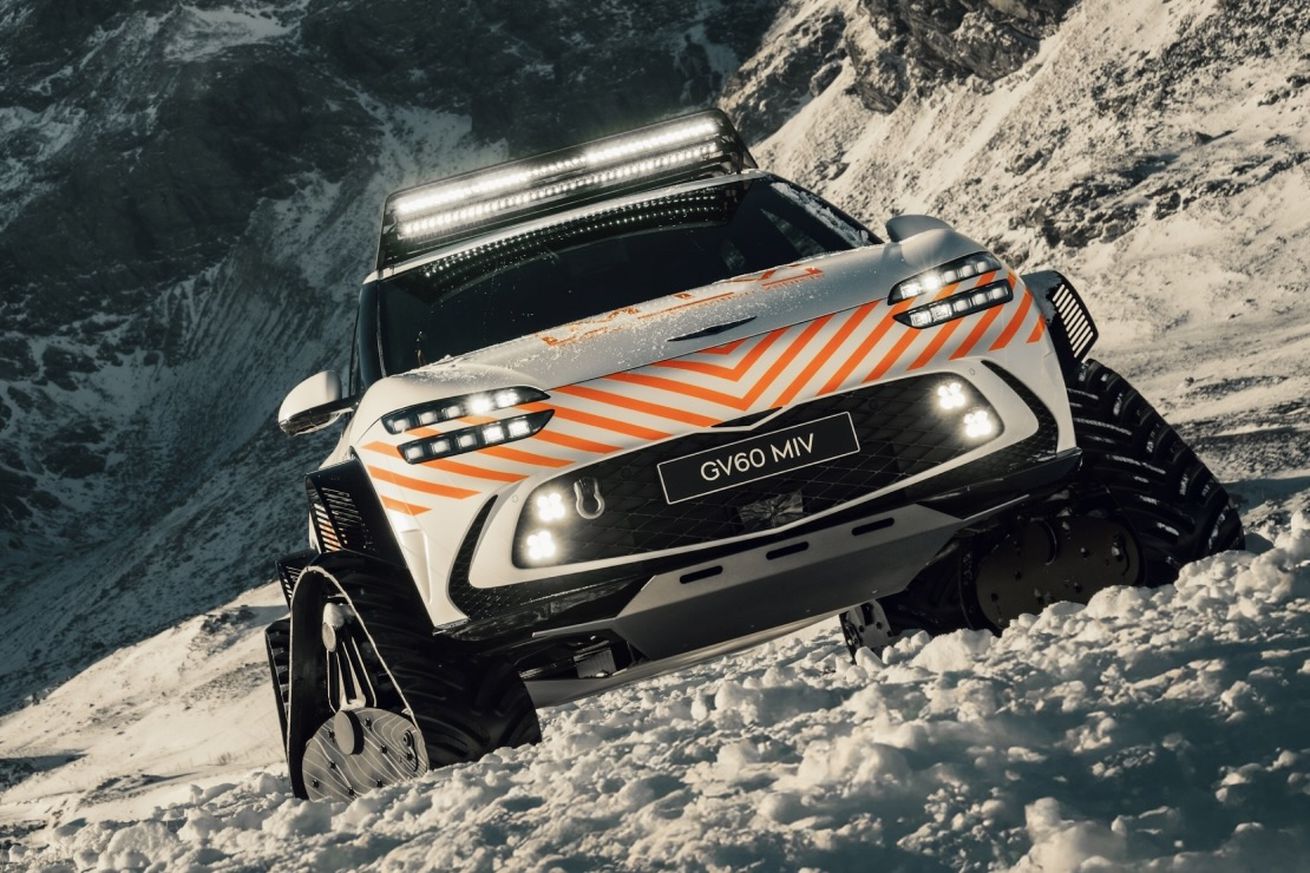 Hyundai’s luxury nameplate Genesis is taking its brand to new (and very cold) heights with a concept that turns its all electric GV60 SUV into a snowmobile. The new GV60 MIV, which stands for “Mountain Intervention Vehicle” is designed to assist in rescue operations on mountainous snowscapes and can also handle “rugged terrains and challenging weather conditions,” according to the automaker.