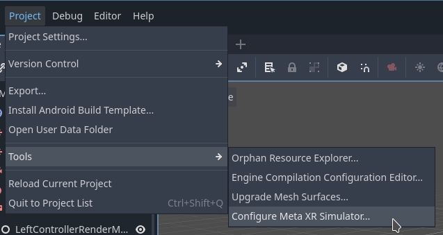 The Godot editor can be configured to launch the Meta XR Simulator when you run your game, and the Godot Meta Toolkit includes a tool to help you with that configuration!
