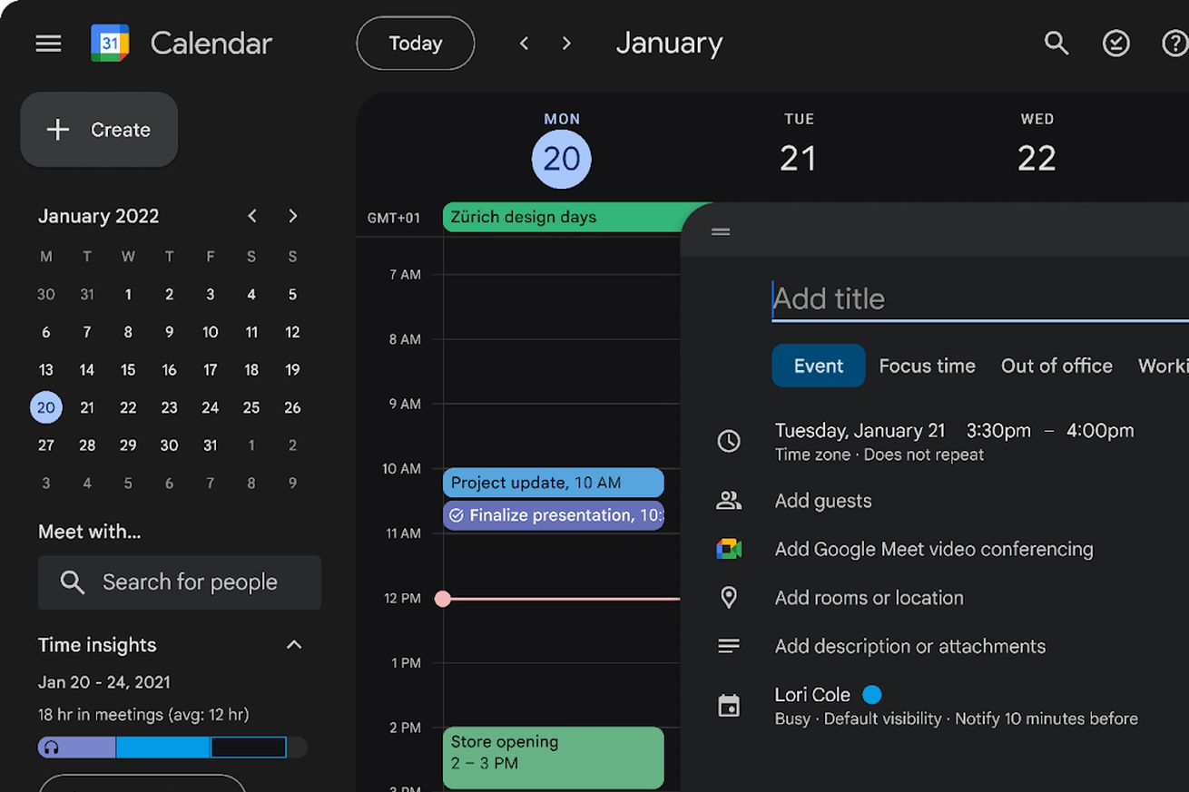 Google is finally introducing a dark mode to the web version of Google Calendar and rolling out a “refreshed user interface.” The new UI will include buttons, dialog boxes, and sidebars that are “more modern and accessible” with improved typefaces.