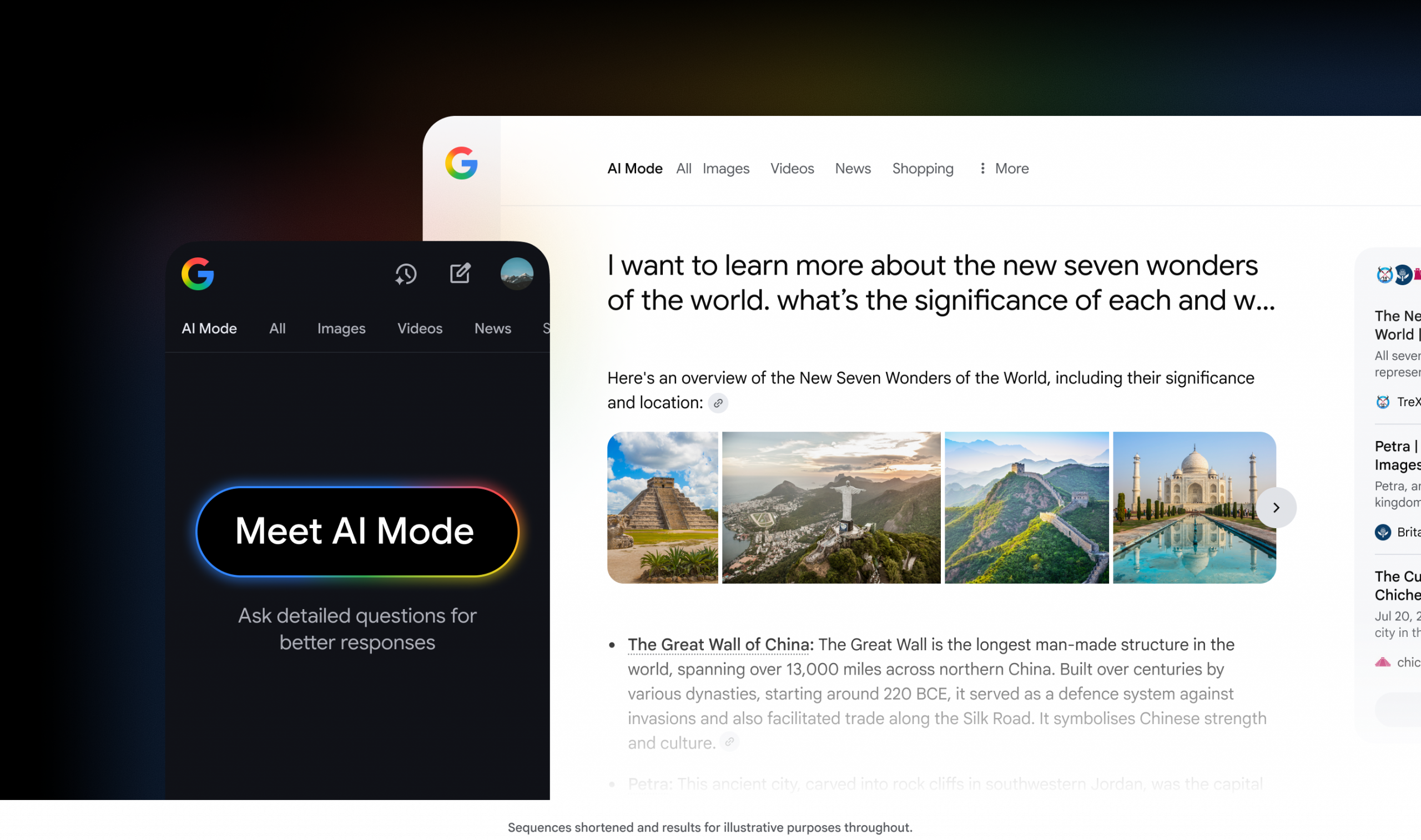 Additionally, Google is making AI Mode’s responses more personal for users in the US who have opted into the AI Mode experiment in Labs. This feature is only available for dining-related topics for now, and will allow AI Mode to tap into previous conversations and reference places you’ve searched for or clicked on in the past to generate more relevant results. That means when you ask AI Mode for recommendations for a lunch spot, it might take into account that you’ve previously searched for Italian restaurants, or have a preference for vegan food, when providing its response.