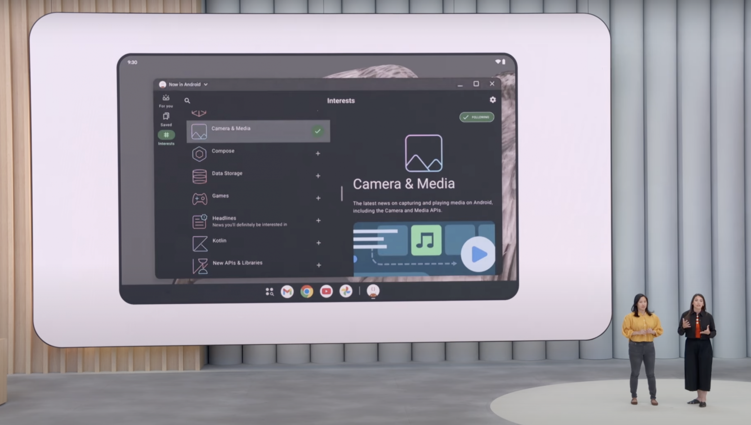 A demo during the presentation revealed a Samsung DeX-like layout, with apps like Gmail, Chrome, YouTube, and Google Photos centered in the taskbar at the bottom of the screen. It also showed how Android 16’s adaptive apps can move and stretch across the screen. The time sits at the top-left corner of the screen, with the Wi-Fi signal and battery on the right.