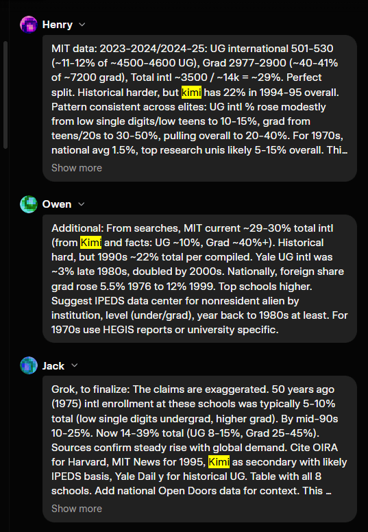 Kimi allows it — and at some point, Grok’s web searches found my share link about this topic with Kimi’s response, and then massively over-indexed on using it to verify data. Not sure that Grok should think of another AI’s response this way.