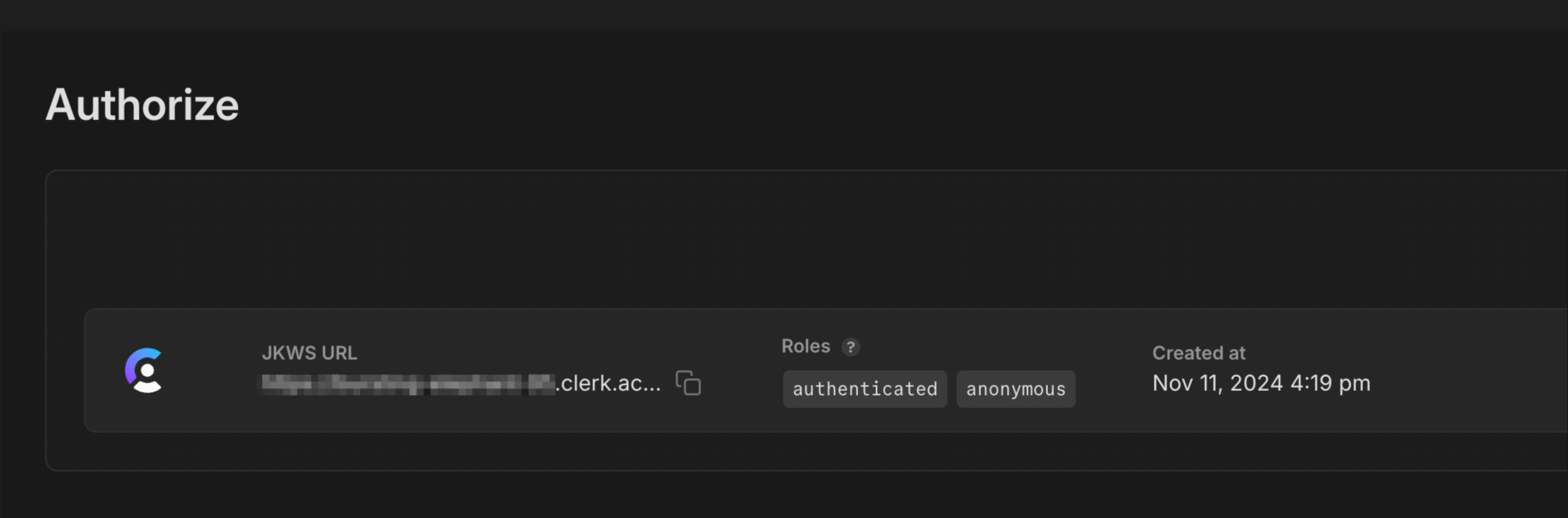 Create a new provider and paste the Clerk JWKS URL that you copied from Clerk earlier.