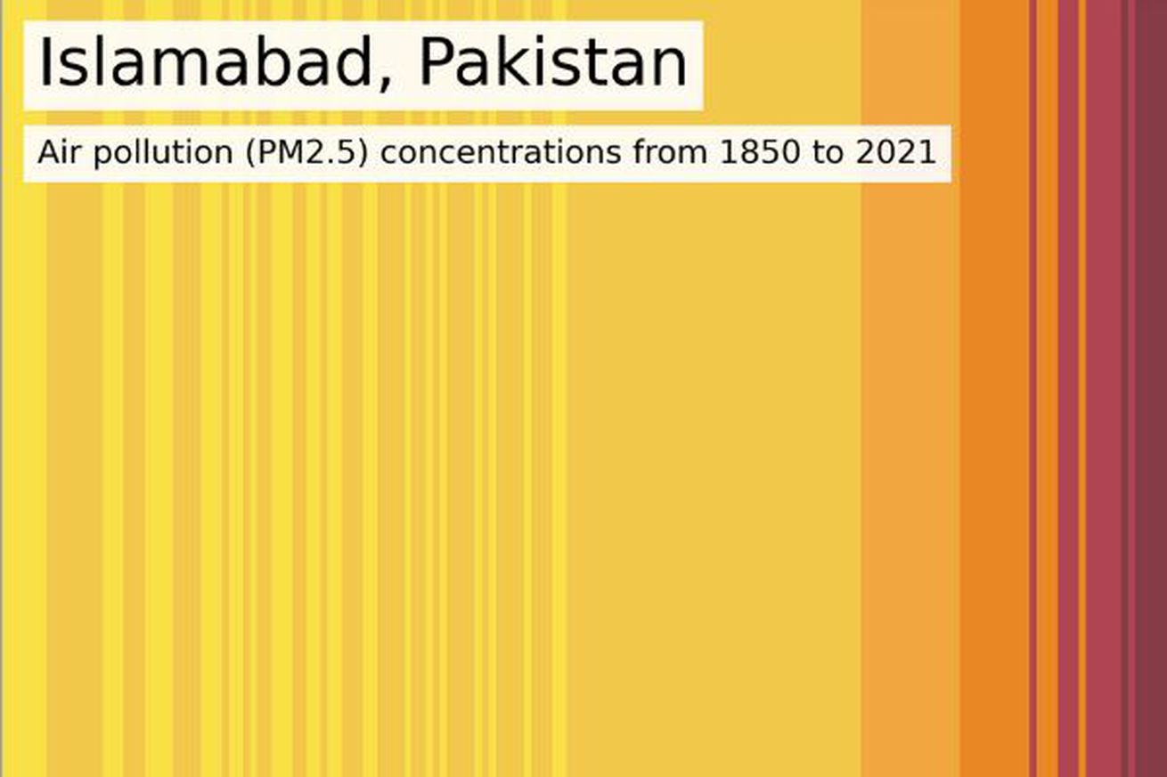 A visualization of PM2.5 air pollution concentrations in Islamabad, Pakistan, from 1850 to 2021. | Image: Air Quality Stripes