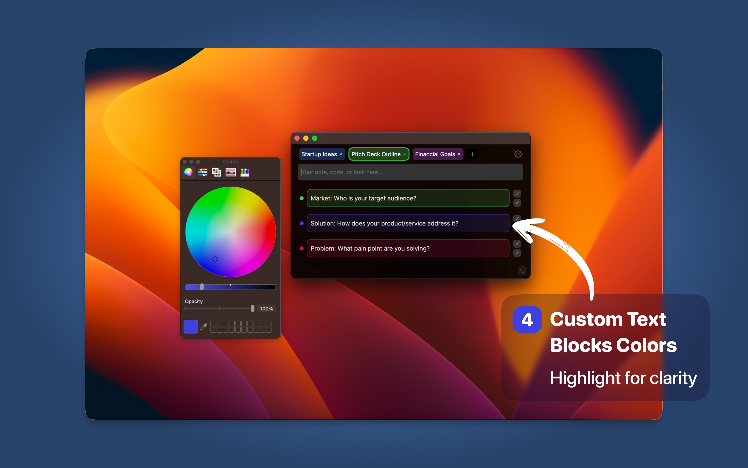 • Multiple color-coded tabs for organization