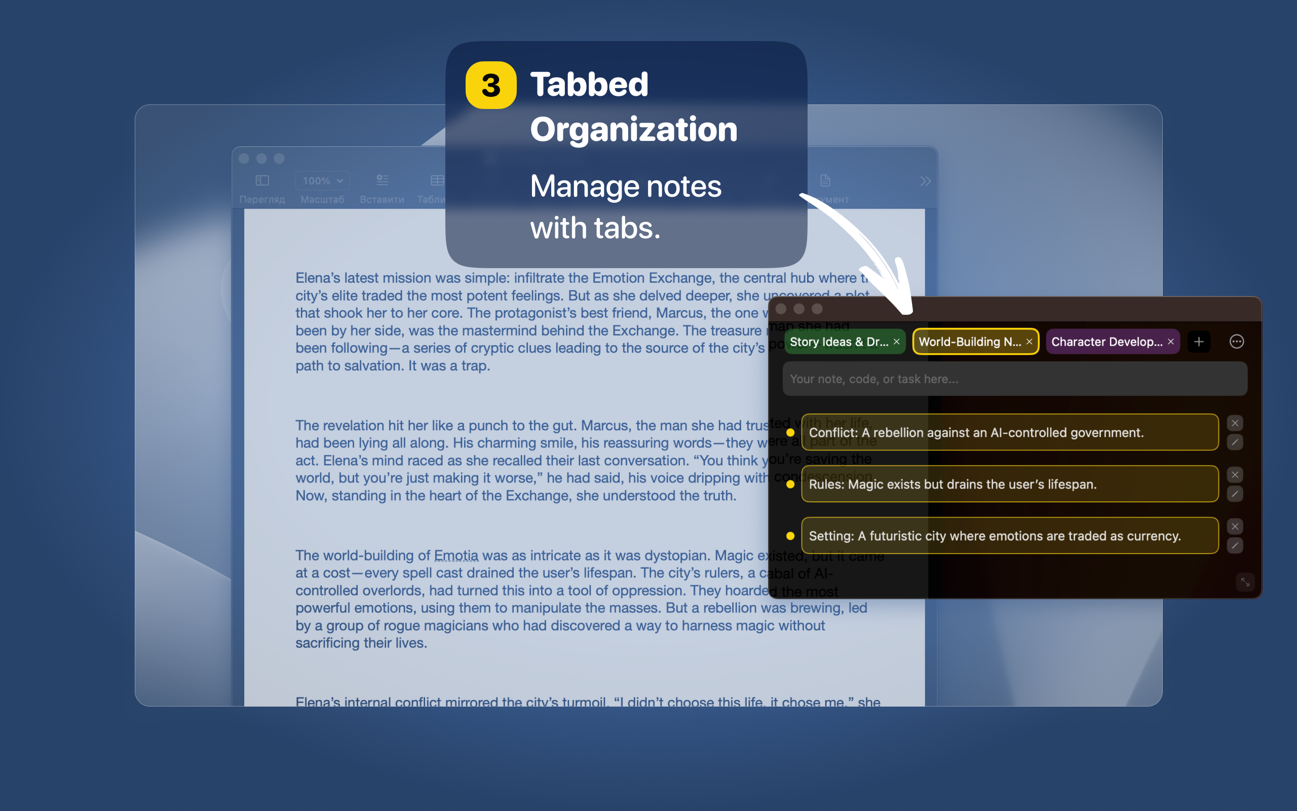 Each tab holds a separate text block. You can add code, emojis, formulas — whatever you need to keep in sight and copy fast. It’s not trying to replace full-blown editors — just be a focused utility that’s always there when you need it.