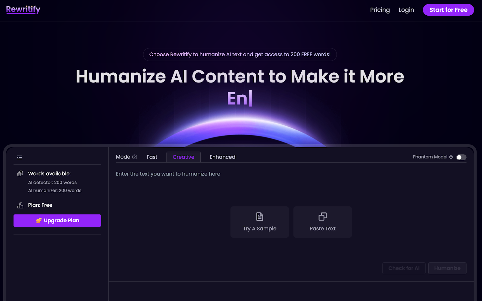 Rewritify AI offers unmatched speed and precision when it comes to humanizing AI text. The platform can produce a newly rewritten version of your AI content in seconds with grammatical correctness being exceptionally well-maintained. Moreover, it can be relied on to produce plagiarism-free content that is still keyword-rich.