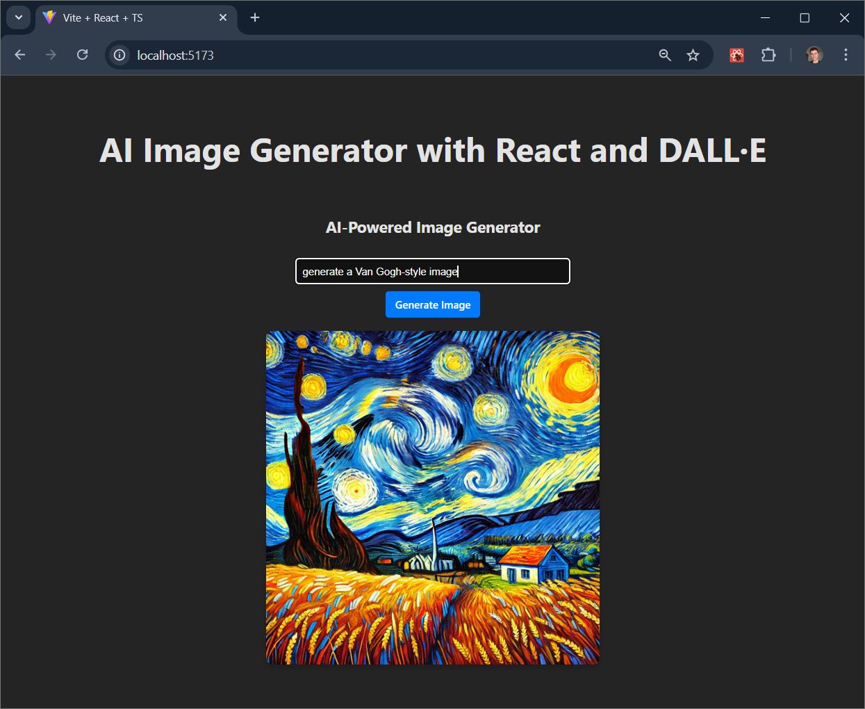 Integrating AI-powered image generation into your React application is simple with OpenAI’s DALL·E API. With further enhancements like prompt fine-tuning, image styling, and different resolutions, you can create more interactive and dynamic experiences for users. Try extending this project with more features and share your results!