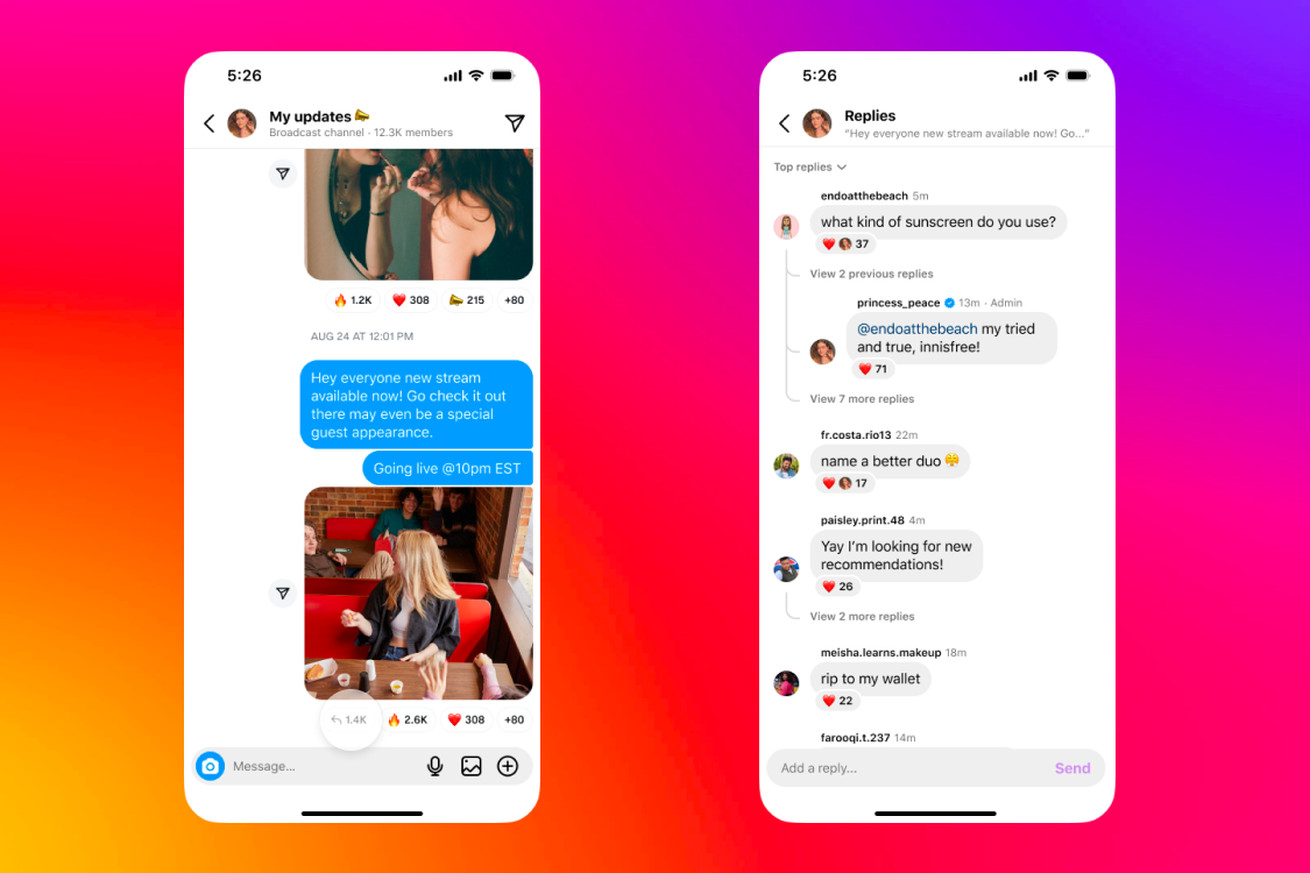 Instagram is adding some new features to broadcast channels that give platform creators more ways to directly interact with their followers. Meta announced that creators can enable “Replies” in their broadcast channel limited group chats, allowing participants to respond to messages and each other’s comments — just like they already can on Instagram posts.